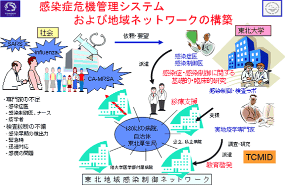 現在、東北地域の感染対策の向上を目的に、東北感染制御ネットワークが設立され活動を行っている。本ネットワークは、東北大学大学院感染制御・検査診断学分野を事務局として、1999年11月に宮城県内の31医療施設が参加した宮城感染コントロール研究会がその前身となり、さらに東北地域に活動することを目的として、東北感染制御ネットワークと発展している。基幹病院・地域中核病院だけでなく、社会福祉施設や専門機関、行政機関が参加していることと、各施設の病院長・施設長をはじめ、感染対策委員長、各施設のICTメンバー、医師、看護師、薬剤師、検査技師、清掃関連職員、事務、老健施設・在宅ケア関係者、行政担当者など幅広い職域が参加している。