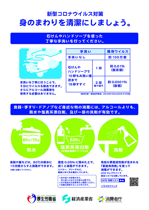 - 身の回りを清潔にしましょう(消費者庁・経済産業省・厚生労働省)