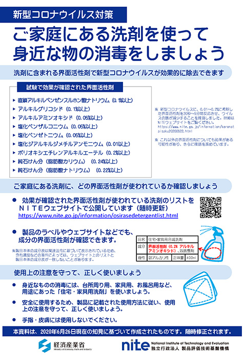 - ご家庭にある洗剤を使って身近な物の消毒をしましょう(製品評価技術基盤機構)