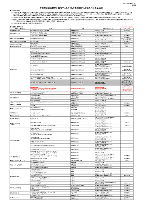 - 有効な界面活性剤を含有するものとして事業者から申告された製品リスト(製品評価技術基盤機構)