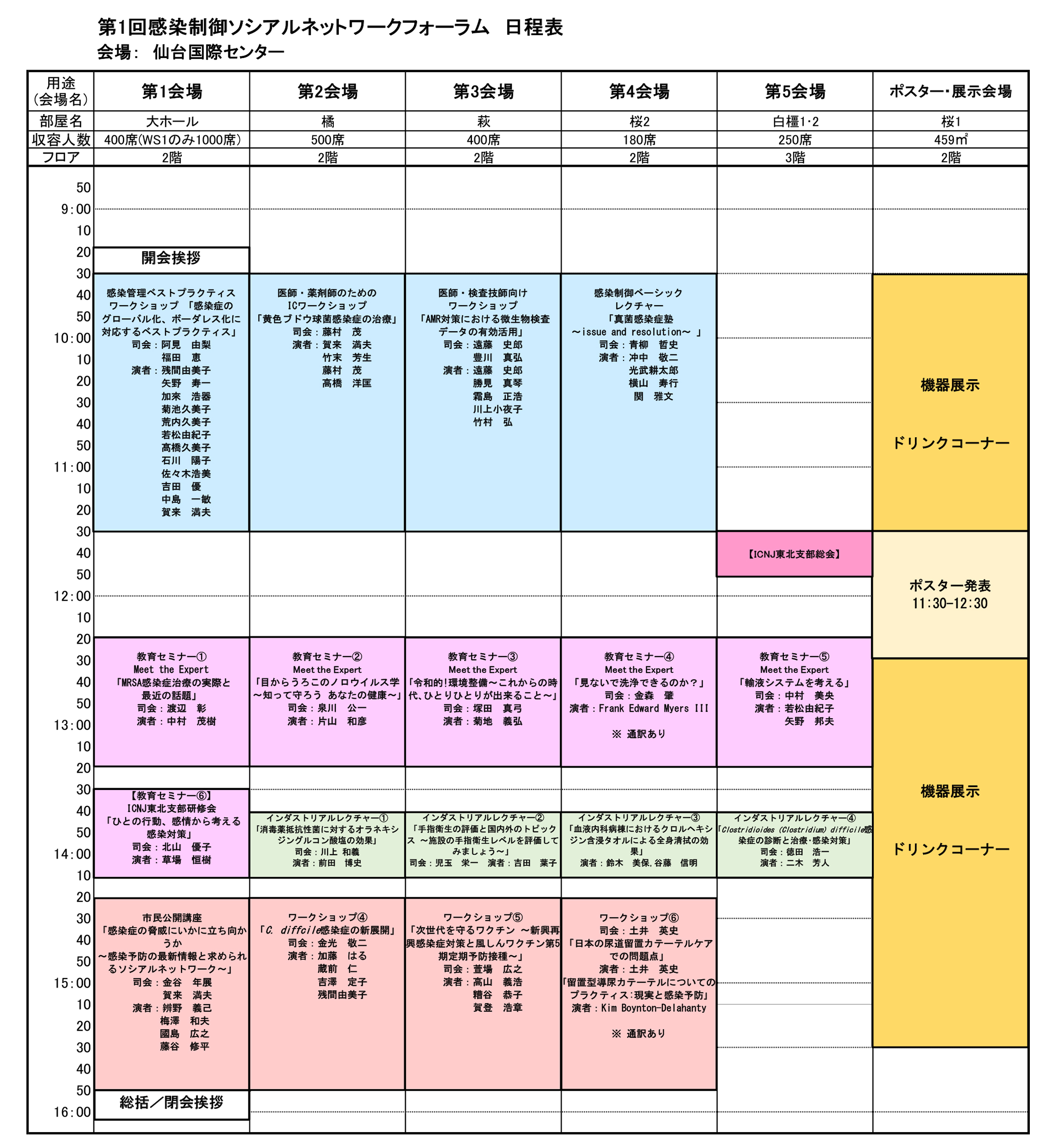 第1回感染制御ソシアルネットワークフォーラム 日程表